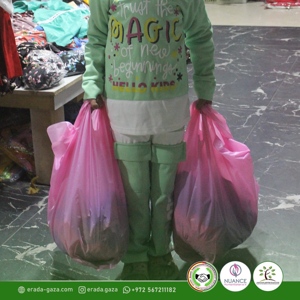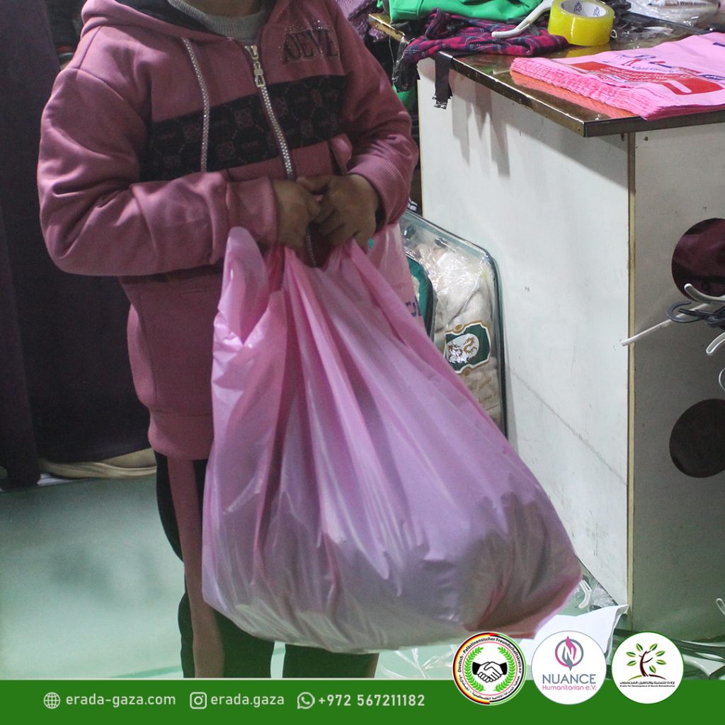 • الغاية : دعم الأسر المتعففة في غزة وتوفير احتياجاتهم الأساسية من الملابس الشتوية.