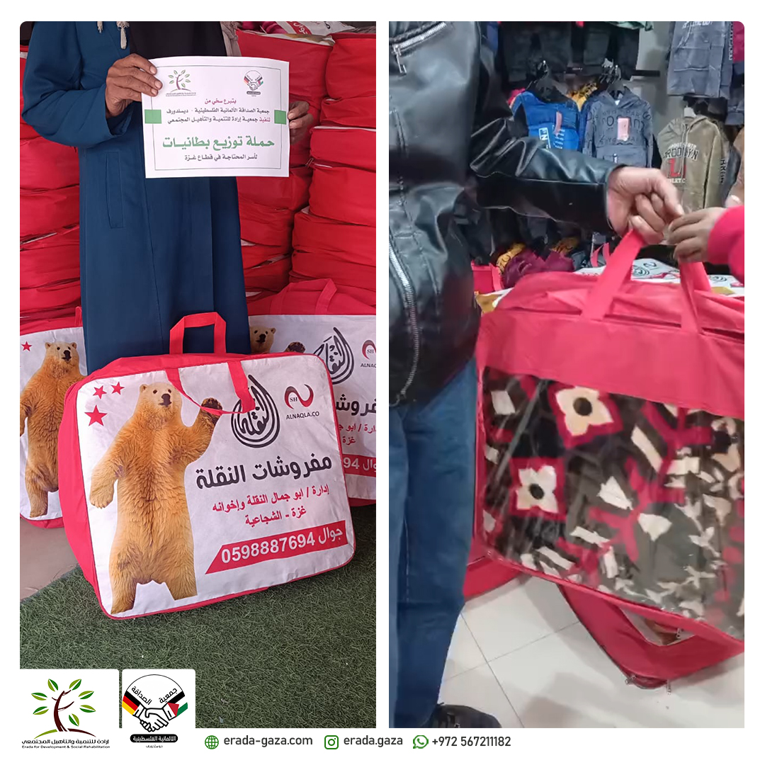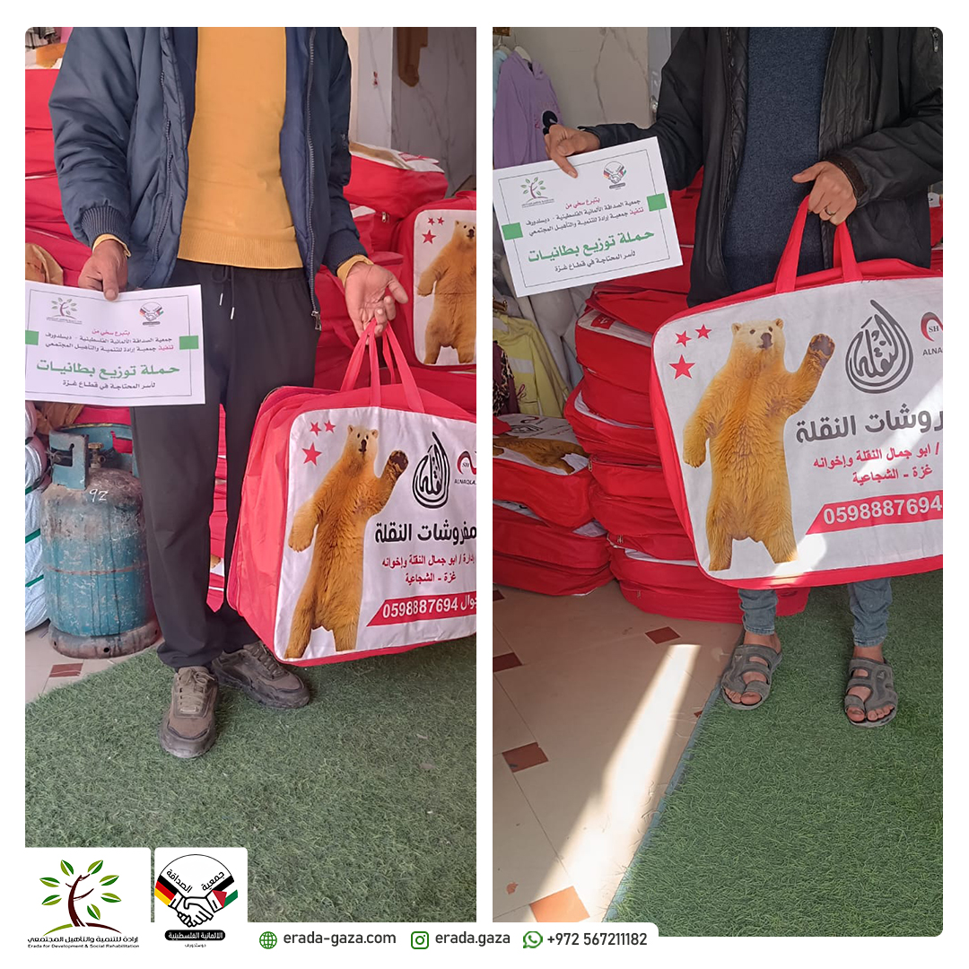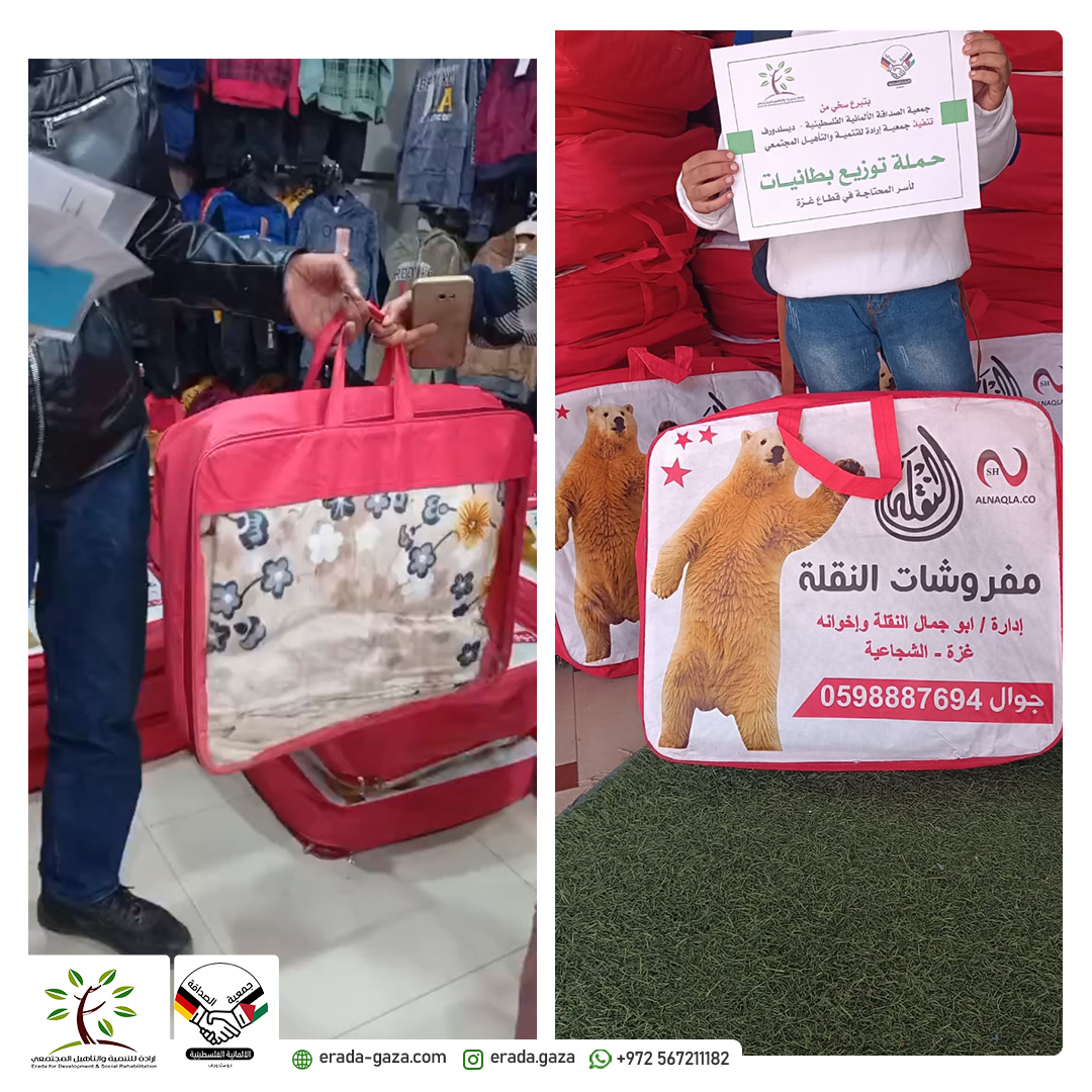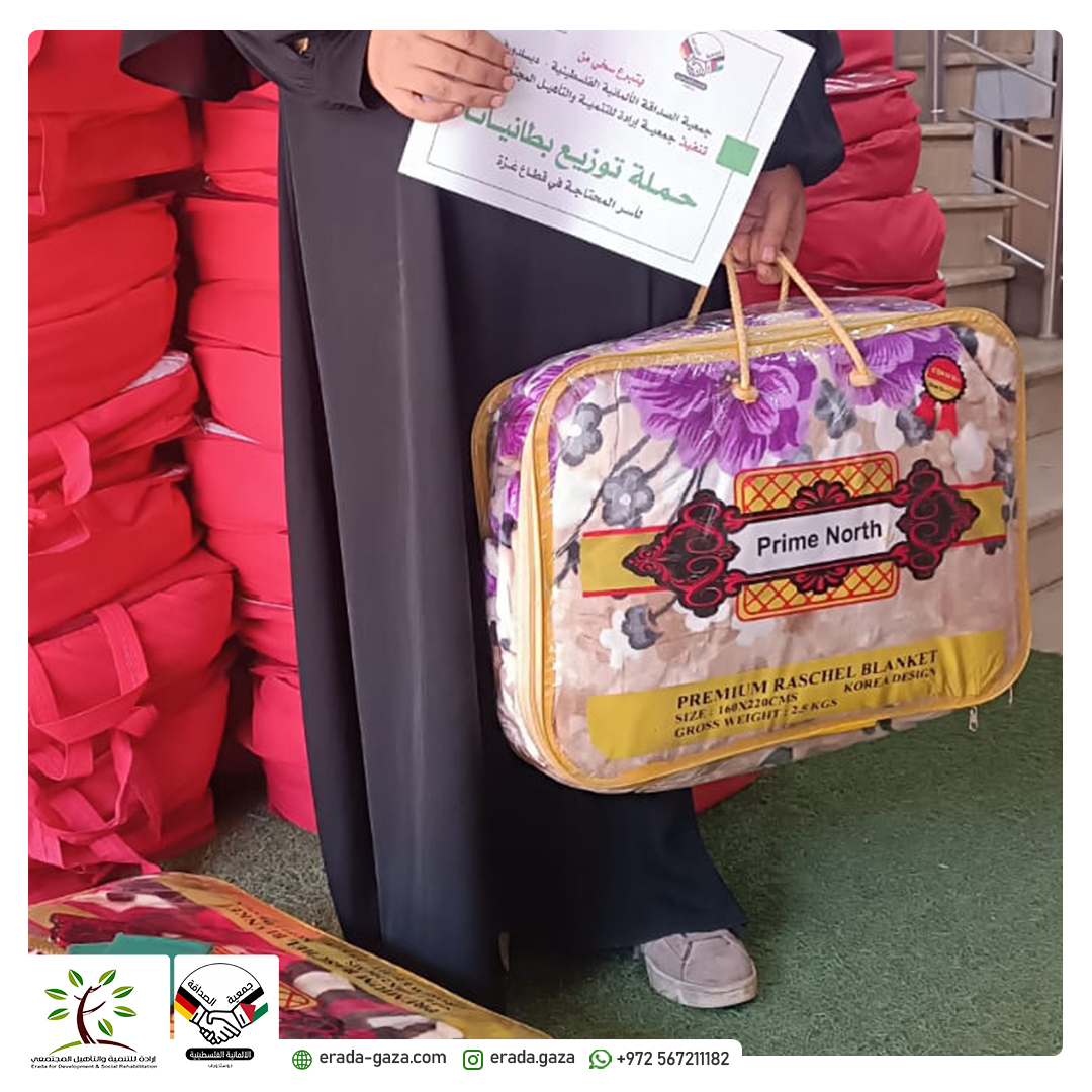 تنفيذ مشروع إغاثي عاجل لتوزيع البطانيات الشتوية على الأسر المحتاجة في قطاع غزة للتخفيف من قسوة البرد والأعباء المعيشية